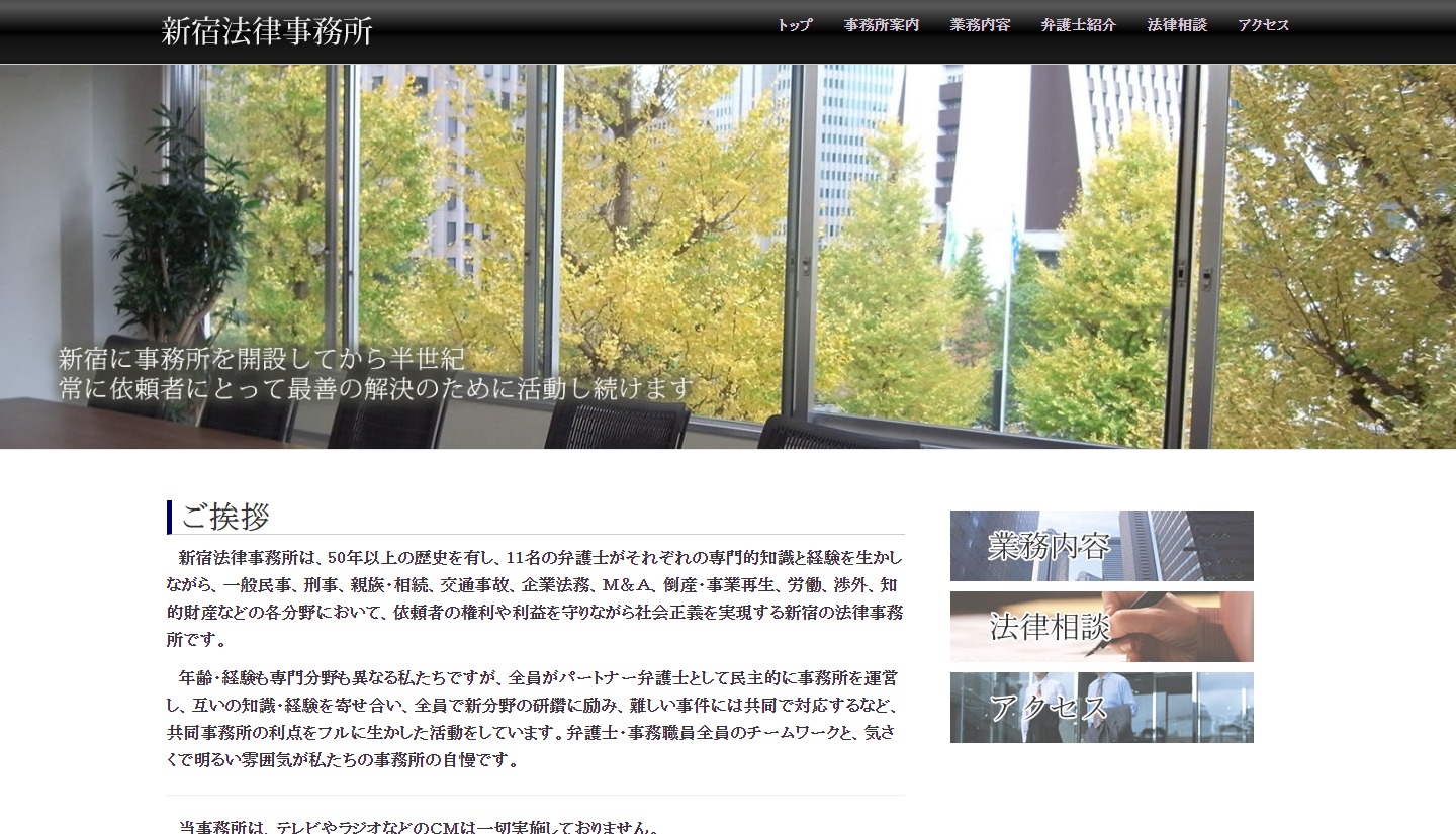 引用:http://www.shinjuku-law.com/ ここは私の予想だと、事務所名そのもので検索されてのアクセス数が多いと思います。というのは、SEO対策は特別なことはされてないからです。つまり、信頼性がGoogleから評価されていると思います。セキュリ…<続きをみる>
