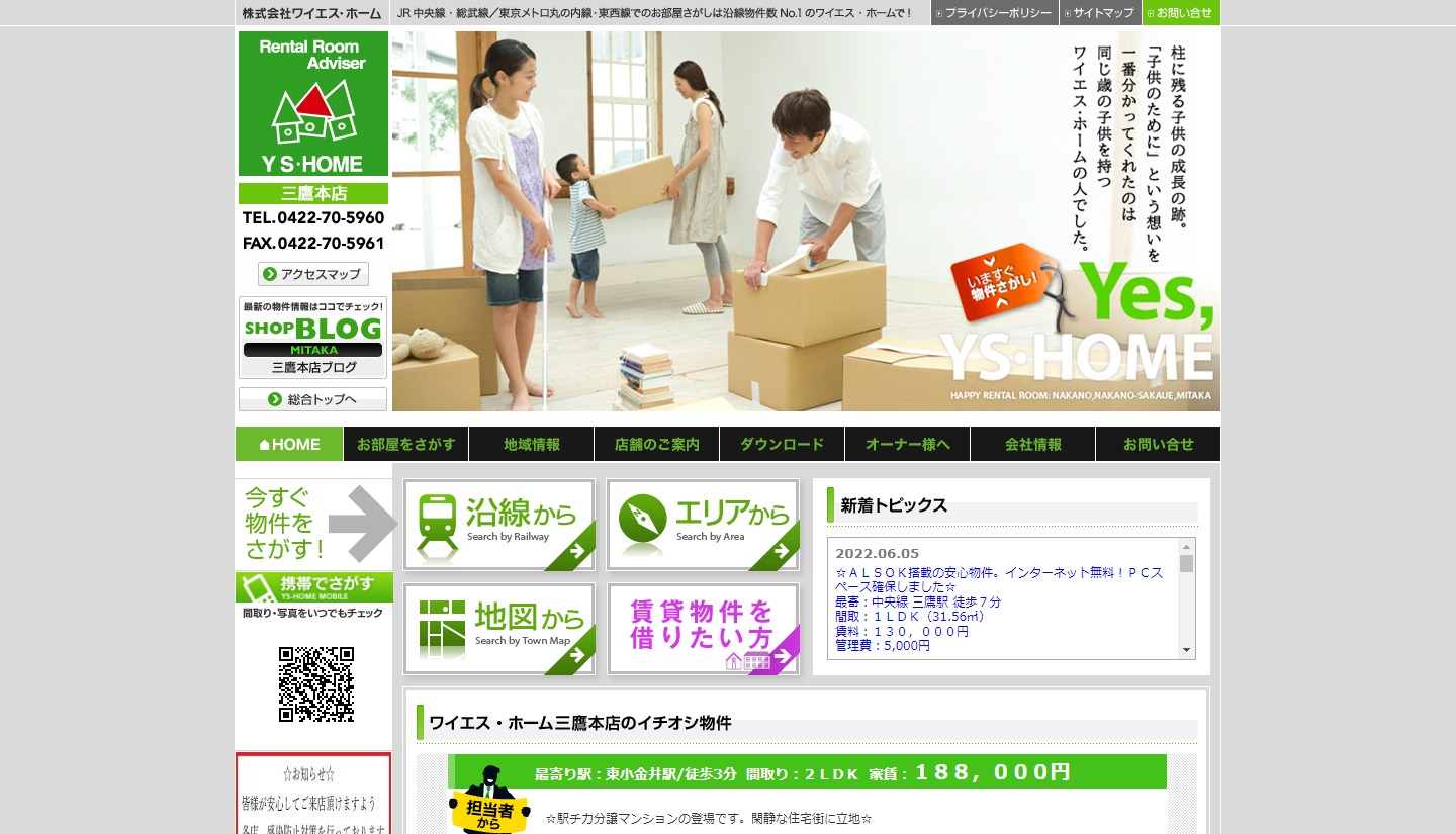 引用:https://www.yshome.jp/index_mitaka.html 三鷹に本店がある複数店舗を持つ不動産会社です。このサイトは私が熟知するシステムが用いられています。そのシステムは次世代が出ているので、それに変えればもっと強くなるでしょう。当方はそのシステムを用いて安…<続きをみる>