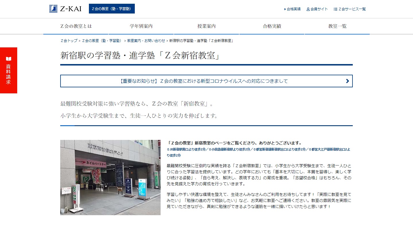 引用:https://www.zkai.co.jp/juku/map/z-shinjuku/ 比較サイトを除いての最上位は大手のZ会です。トップページではないですが、どうしてこのページが上位にくるかというと、きちんと新宿校に関して特化した情報がこのページに書かれているからです。検索意図に沿って…<続きをみる>