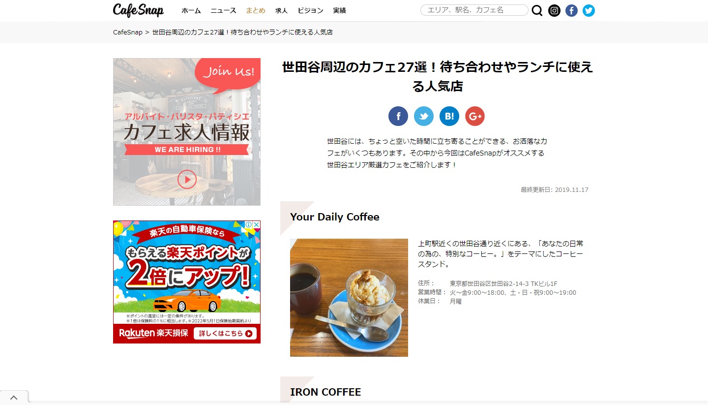 引用:https://www.saint-marc-hd.com/b/saintmarc/attr/?citycode=13103&brand_type=CFE 「港区 カフェ」で調べる人は少ないだろうとは思いつつ。「港区郷土歴史館」の中にあるカフェがこれより上位でしたが、それを除いてカフェ自体のサイトではこのサイトが最上位で20位でした。このカフェは大手で必…<続きをみる>