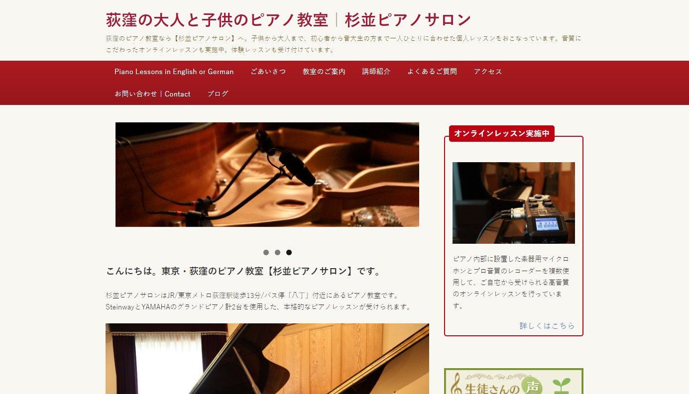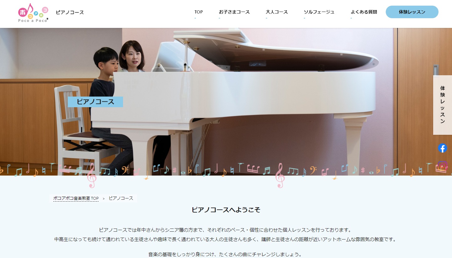 引用:https://www.poco-a-poco.jp/piano/ titleの一部に「東京都練馬区:練馬駅徒歩1分」と書かれています。 講師紹介、サイトポリシー、プライバシーポリシーがしっかり書かれていることから、信頼性を高く評価されている可能性があると言えます。