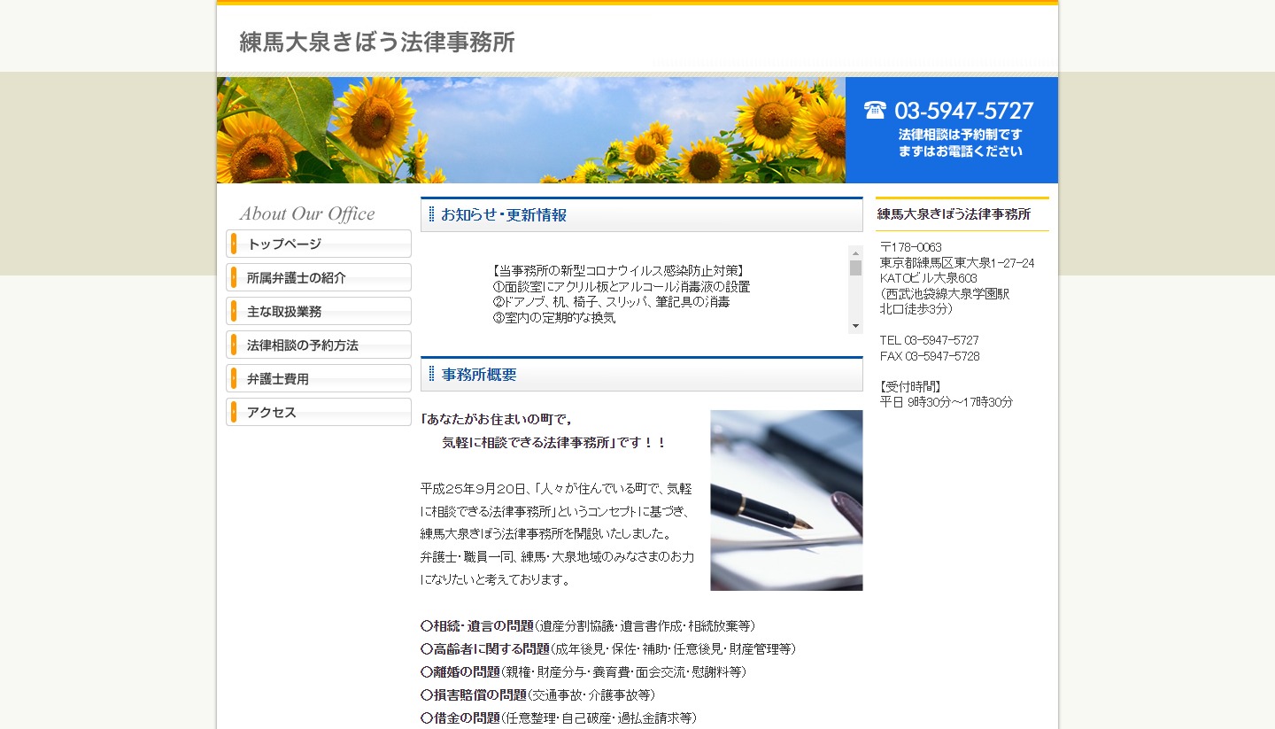 引用:https://www.n-kibou-lo.jp/ titleは「練馬大泉きぼう法律事務所|練馬区 大泉学園」と書かれています。事務所名に地名があると強いです。SEO対策は命名から始まります。 meta keywordsという、現在は効果がない部分にも…<続きをみる>