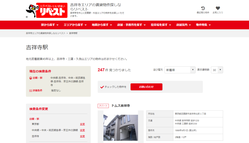 リベストは武蔵野市に複数店舗ある不動産会社です。この物件検索サイトは私が熟知するサービスが利用されています。